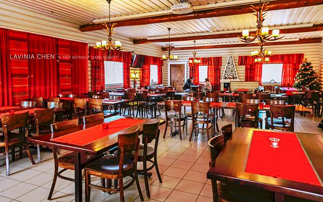 在房间里假装休息了一下,我们就来餐厅吃饭了。虽说不困,但是还是会饿的。圣诞老人村里的一切都是红色系的,很有圣诞的氛围。