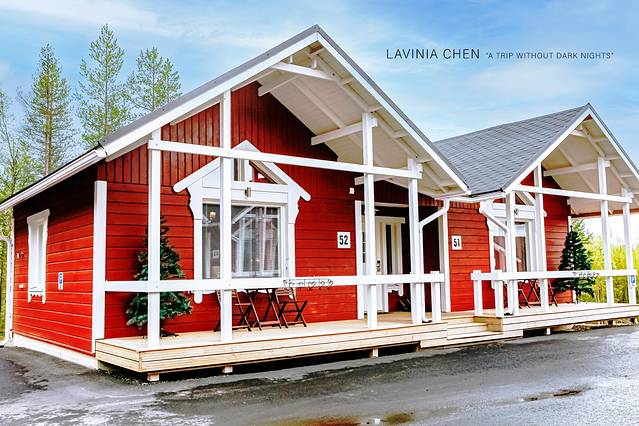 我们预订了圣诞老人村的小木屋,村里的接机车早已在外等候,再下车我们就来到了住处。