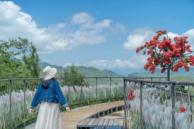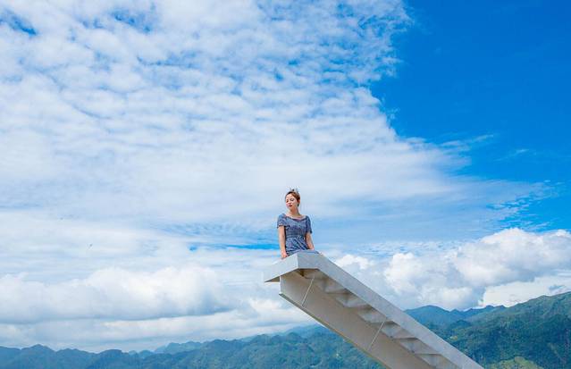 尔玛古道的尽头便是去往云中农场的观光车,我们乘车而去,直奔露营地,下车点便是一个打卡点,在蓝天白云的背景下,倒是很适合拍照。