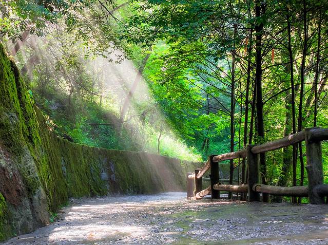 我们沿着云中农场的方向,经过尔玛古道一路走去,阳光透过树叶的缝隙照射下来,光影也变得温柔,我们走在其中,不言而喻的清爽穿透我们的身体,舒服的好像到了三月的春风里。