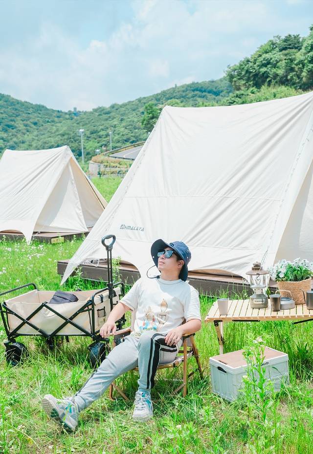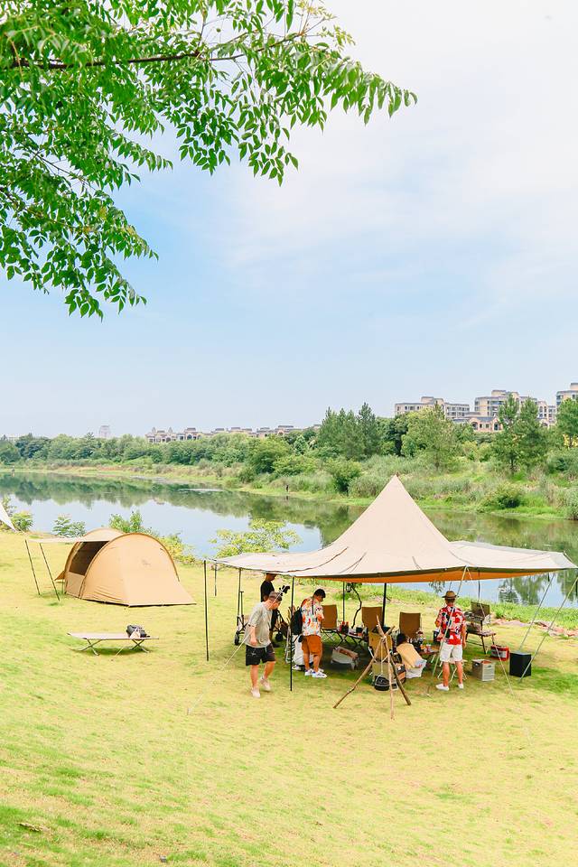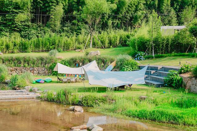 这里依山傍水还有大草坪太适合露营了,坐在帐篷门口克米特椅上,我们可以一边享受慵懒的午后时光,一边品尝着精致的下午茶,一边和好友自在地谈笑风生。