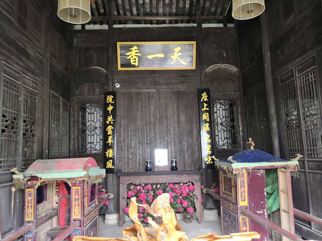 一座厅堂,两边的小轿惊到我了,原来古时的轿子才这么大,还没有一人高。
