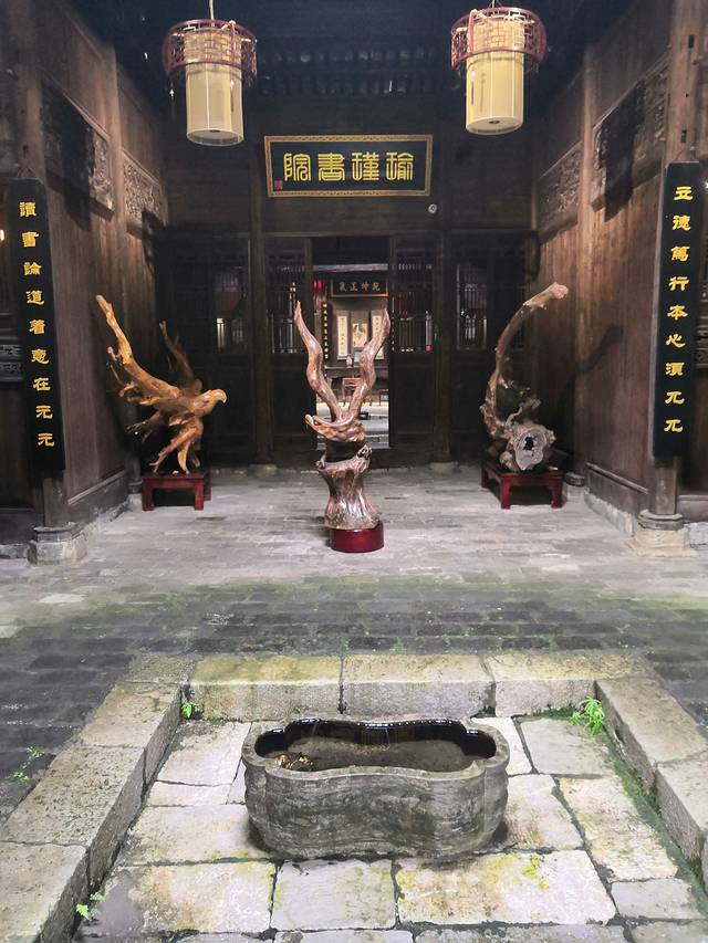 大堂的天井,天井中间的石缸应该是依天井形状而定,有圆有方。