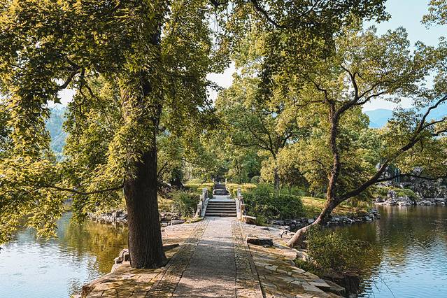 漫步东湖,走在曲径通幽的石板路,茂密的林荫里,满眼绿景,心情也十分轻快欢愉。