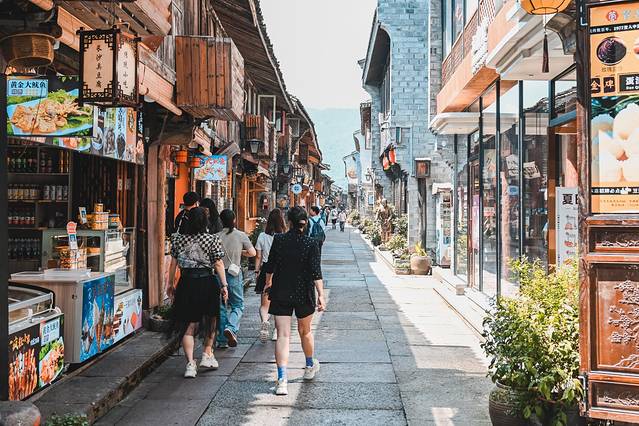 如今的紫阳古街,与时俱进,城市新潮已经融入老街之中,民宿,书苑、咖啡、餐厅、茶饮、文创市集等等,已俨然成为了一处吃喝玩乐、休闲放松的城市度假之地。