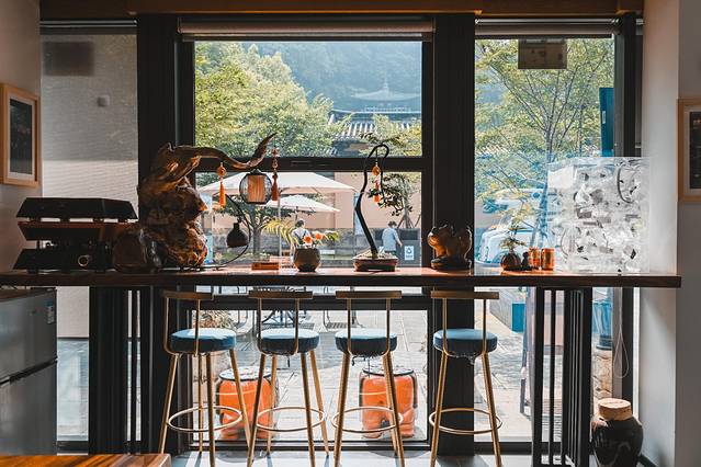 民宿的一楼我也很喜欢,这是一个咖啡空间,落地窗外就是古街街景,下午在这里发呆晒阳光,也非常舒服~