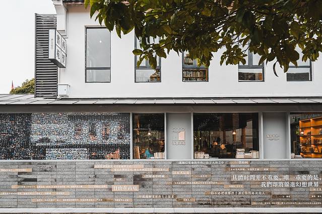 书店外观,一眼所见,就让人欣喜。走进里面,别有洞天,一楼是吧台、咖啡空间,整体复古文艺,安静舒适,特别是落地窗,外面是古街街景,视野特别有格调。