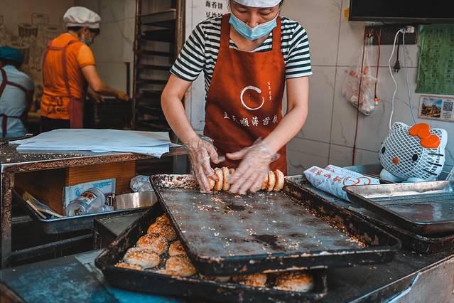 整条街与蛋清羊尾相出名的另外一个特色小吃便是海苔饼,整个古街都飘着海苔饼的饼香,让任忍不住想去品尝一下。