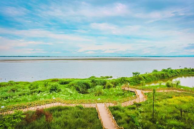 望湖亭是游玩吴城必打卡的一处景点,它位于吴城镇的东部,处赣江、修河交汇处,与庐山隔湖相望。