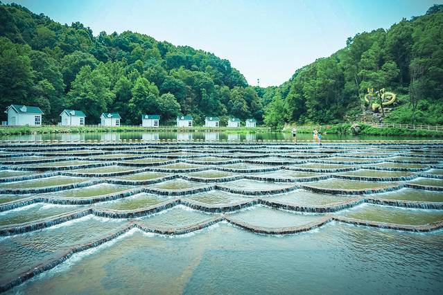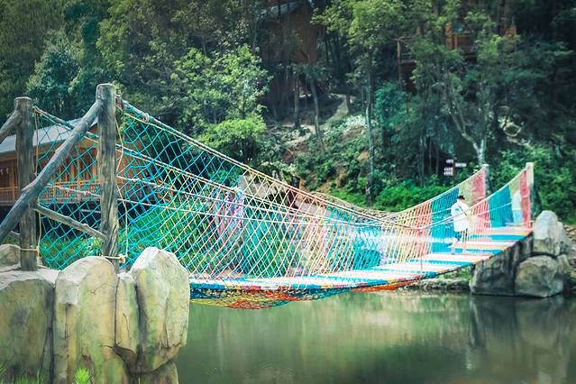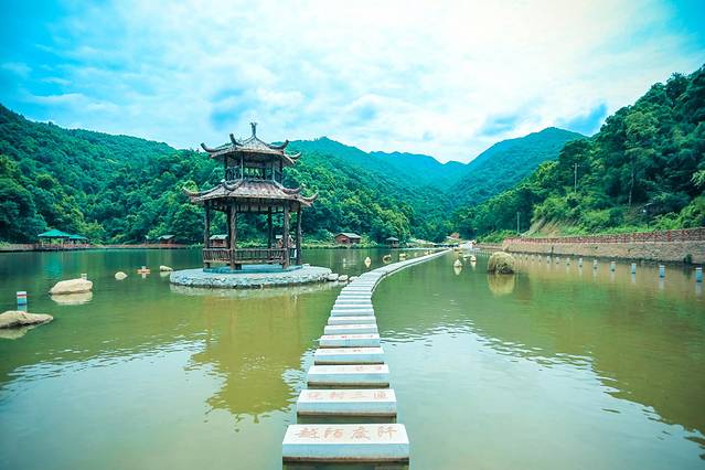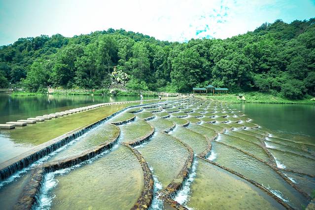 溪水上有一些游乐设施,例如喊泉、游船、水上浮桥等等,可以准备一套泳衣哦!对了,水上梅花桩一定要去走走,尤其是穿那种很仙的衣服拍照,太好看了。