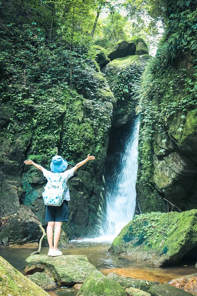 接着我们往山上走,去看瀑布。东坡岭景区内有大的瀑布群,在山中漫步穿梭,聆听水流动听的声音。