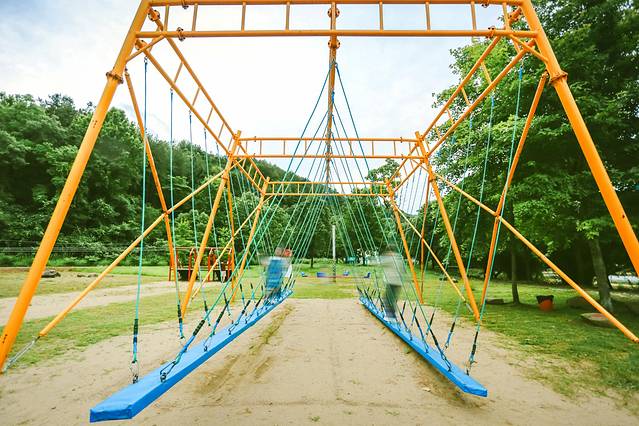 最后我们来到山下的大草坪上,这里有个百姓乐游乐场,有很多无动力游乐设施,无论是大龄儿童还是小朋友都玩得很开心。