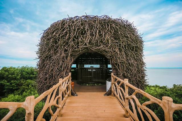 不得不感慨一下,这吴城的观鸟点,本身就做得很精致了。每一个观鸟点,都有不同的风格,但又都是和自然相呼应的,融于自然当中。
