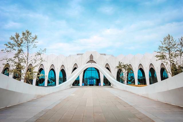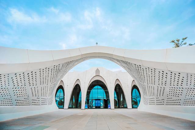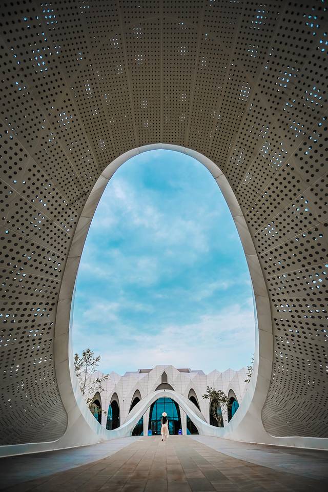 饭后开始游览候鸟小镇了,第一站来到了会展中心。水上公路已是网红,而会展中心我目测就是下一个网红打卡地。这建筑也太美了吧!好适合摄影啊!随手出大片的那种!