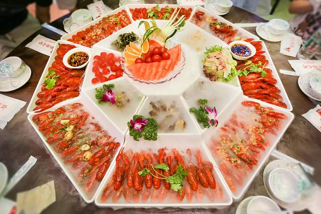 人多的话,建议直接整上一套龙虾大餐,有多种做法的龙虾,还有精品凉菜,精致丰富。