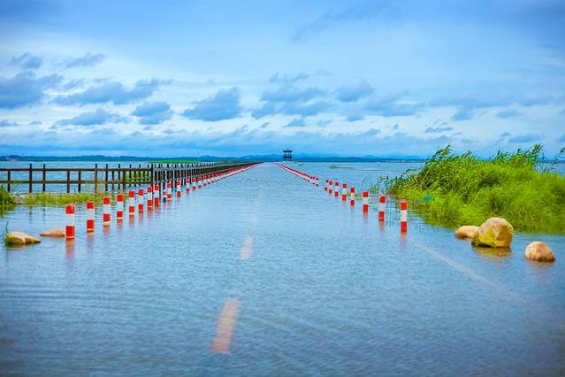 永吴公路起于江西省九江市永修县城,止于“珍禽王国”吴城镇,途经著名的鄱阳湖候鸟保护区。每到夏季进入汛期,鄱阳湖水位上涨迅猛,便会漫过永吴公路大湖池段,形成水上公路的景观。