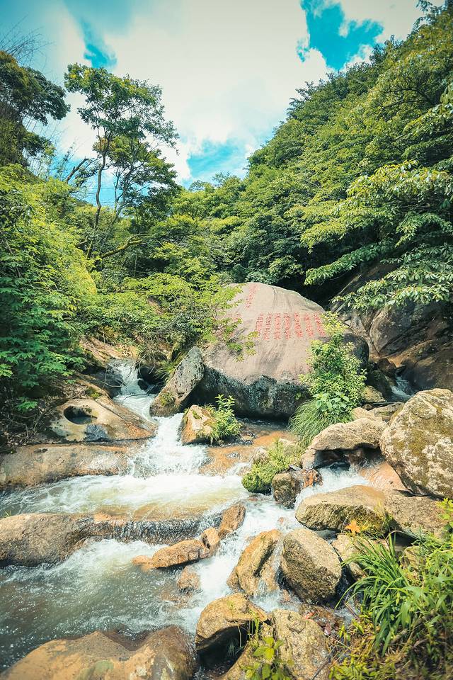 绿水青山、溪水瀑布、奇山异石、摩崖石刻,这一路走一路看,真舒服。现在正是炎热的夏季,这里的气候清爽宜人,令人心旷神怡,真是个避暑的好地方呀!