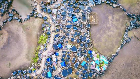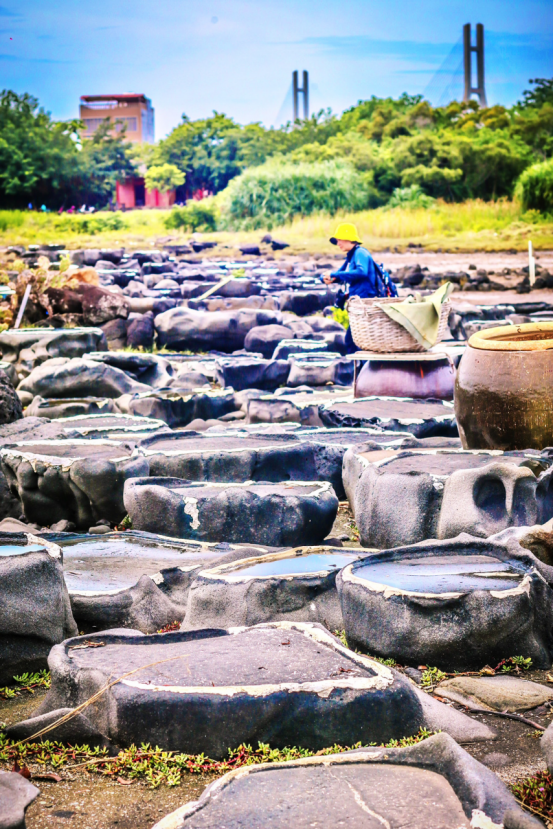 古盐田我是第一次见,形状各异大小不一的古盐槽,都是就地取材用滩涂上火山石雕琢而成,一眼望去对于我来说视觉上还是非常震撼的。要知道这些保存完好的盐槽,在我们旅客眼中是别样的美景,但它们的每一处都刻写着很深的文化意义。