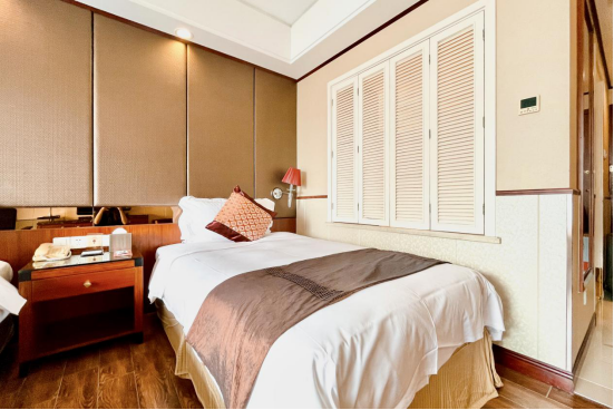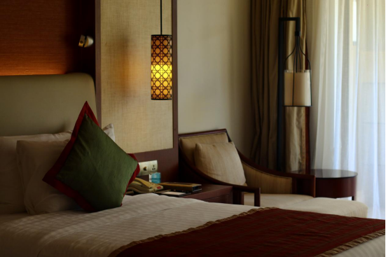 酒店整体是中式风格,几乎每个房间都能看到海,住着很舒服。如果不想出房间,坐在阳台上,看着日落喝一杯冰饮,也是一个不错的选择。