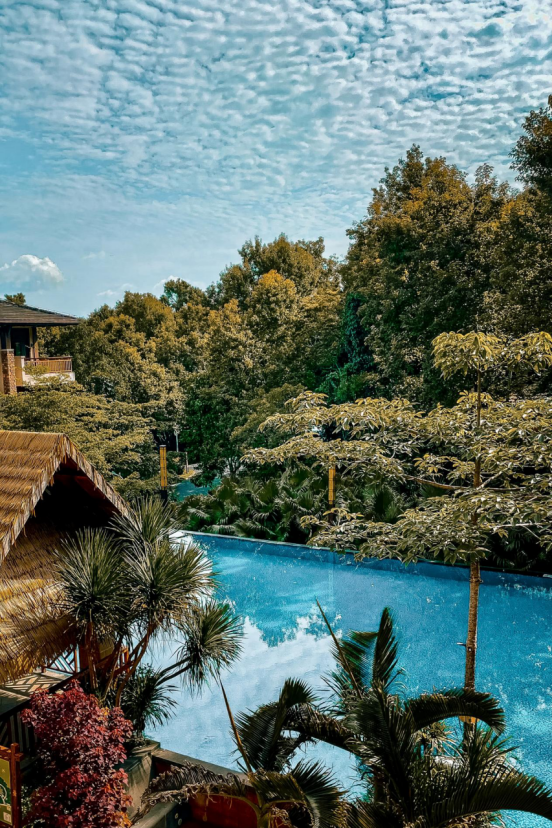酒店里竟然有一只可爱的小猴子,看到它的时候,不禁就会想到故事里的孙悟空。这个原生态的酒店,远离喧嚣,避开尘世,让你以为自己真的是在一个与世隔绝的仙境之中。