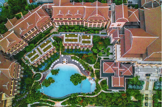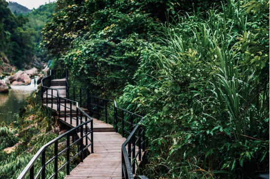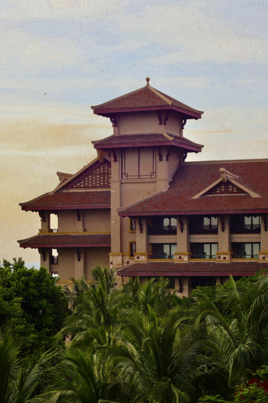 设计:五指山亚泰雨林酒店是东南亚建筑风格,兼有五指山区富有传统和民族特色的船型屋与吊脚楼等建筑形式。