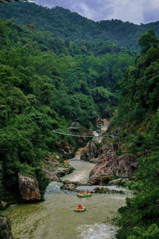 在五指山除了感受大自然惊艳动人的美景,还可以玩漂流~五指山雨林峡谷漂流是唯一的热带雨林峡谷漂流,唯一的原生态漂流,唯一的水质最好的漂流,唯一的海拔六百多米的漂流,被称赞为五指山第一漂。