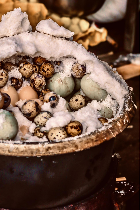 在古盐田除了感受千年的制盐文化,你还可以享受到独特的美食,就是用日晒老盐制作的盐焗鸡蛋和盐焗鸡。尤其是盐焗鸡的确味道独特,用最传统的烹饪方法,不添加任何香料,鸡肉带给你的是粗盐的香味与特色。