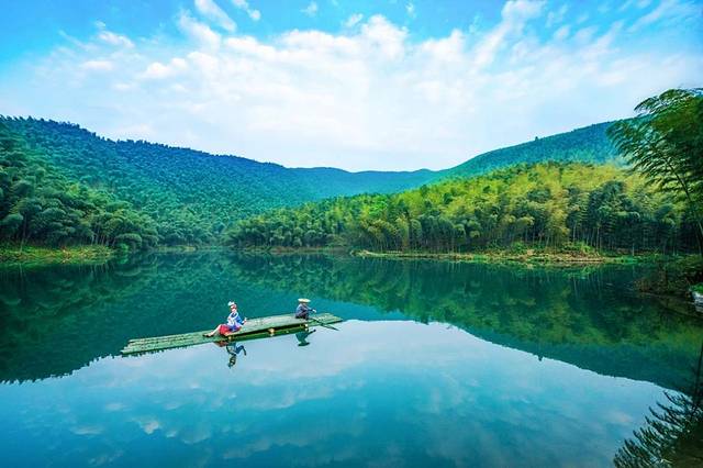 茂密翠绿的竹海环绕着湖泊,光是视觉上都已经自动降温5℃。