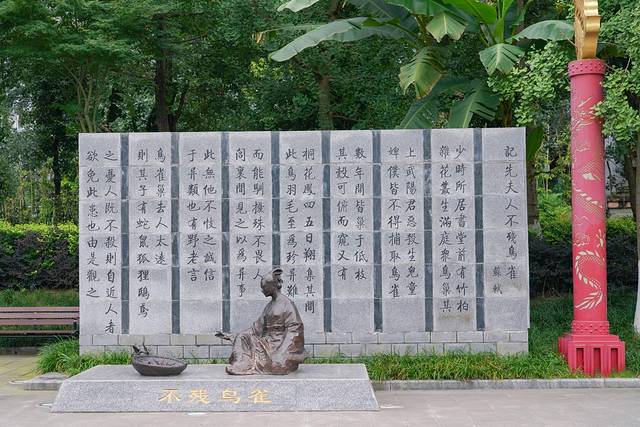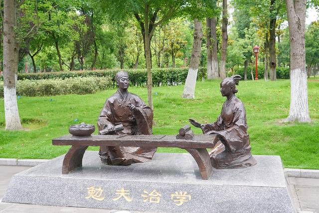 公园内有很多塑像,“勉夫治学”,“教子读史”,“不残鸟雀”等等,都讲诉了关于程夫人的故事。
