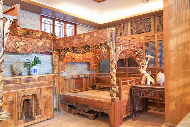 在龚村,除了寻隐酒店,还有一个川渝窗花及民俗博物馆。古旧家具是人类宝贵的物质遗产和文化遗产,床在家居中又是重中之重。