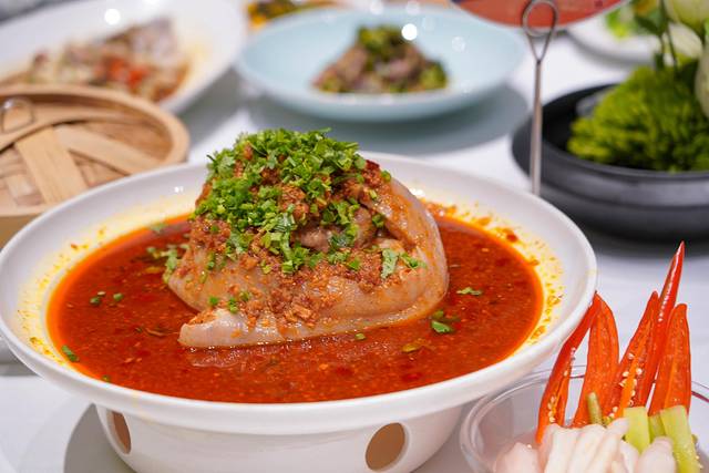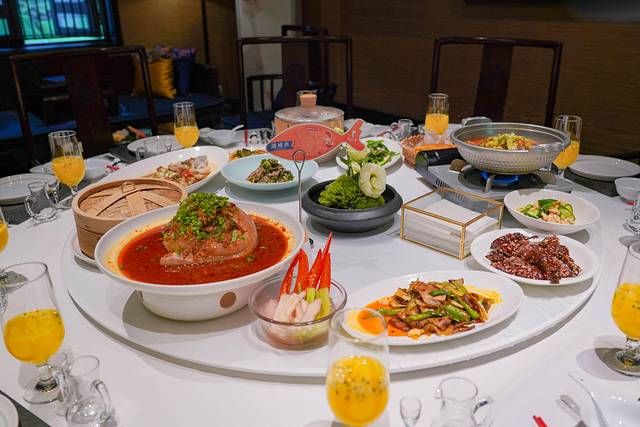 来眉山,一定要试试眉州东坡肘子。在紧邻三苏祠旁有一个古色古香的园林,是个特别舒适又雅致的餐厅。东坡肘子肥而不腻,软烂入味,入口即化,值得一试。东坡泡菜也是一绝,让人停不下筷子。除了这些大众所知的菜品,店内的烤鸭甜皮鸭等等特色菜也是不可错过的。