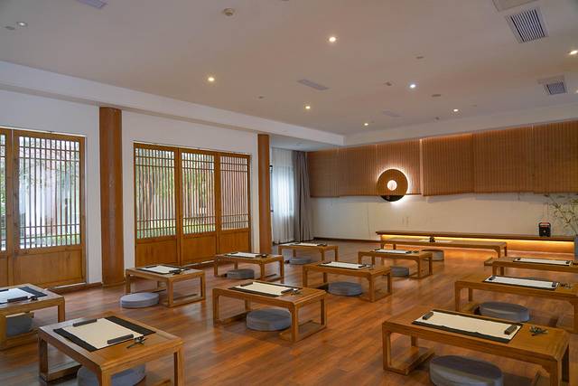 酒店专门设计了禅室,在这里可以冥想、书法、禅修,在慢生活的同时体会到禅意,在这里体验到难得的悠闲和清净。