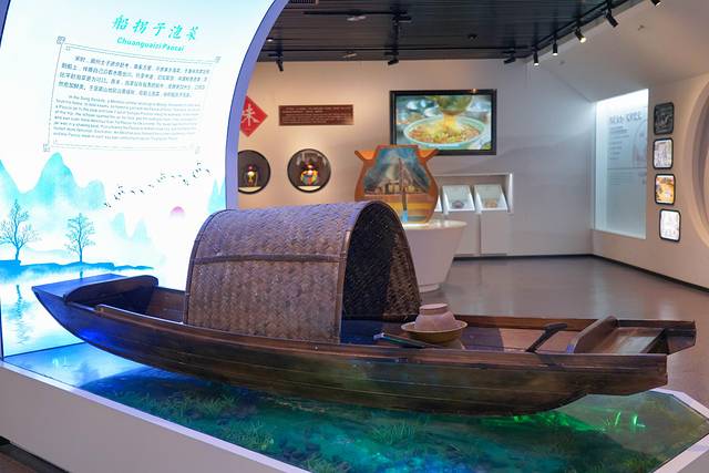 博物馆里还有一个船拐子泡菜。在宋时,眉州士子进京赶考,离家万里,不舍家乡泡菜,于是将泡菜坛搬到船上,伴随自己沿水路出川。泡菜坛在摇晃的船中,发酵更充分,使得泡菜的口感更佳鲜美。眉山地区沿袭成俗,在船上泡菜,俗称船拐子泡菜。