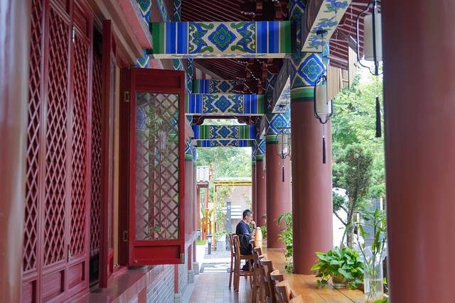 这家书店的环境非常棒,既有室内阅读区,也有室外阅读区,我特别喜欢室外的风格,古风长廊的设计风格,即使在这坐上一天,也不想离开这。