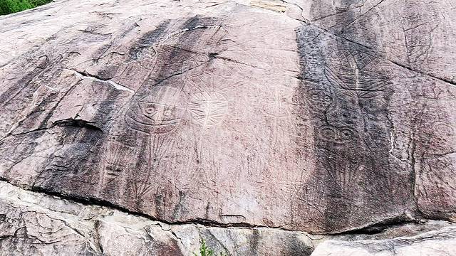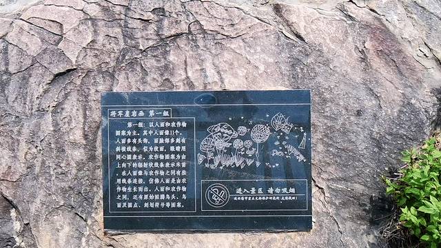 其中孕藏着丰富的文化,令人叹为观止。最值得一看的是山中将军崖上的岩画,岩画凿刻在长约22米、宽约15米的平整黑色岩石上,内容有人面、兽面、农作物以及太阳、星星等各种符号。