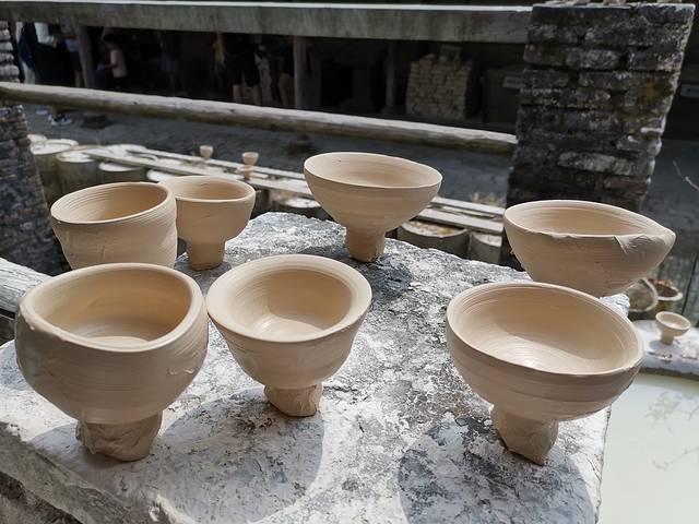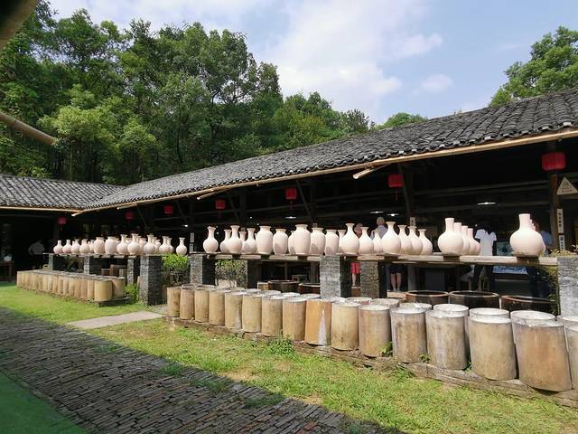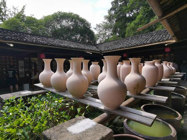 景区的一半地方是个湖,连着一些亭台水榭以及老房子。真正的瓷器传承人手工作坊区域,全是大大小小的孩童,摸着泥巴捏陶,大人一旁看着。而古窑展示区,又有很多卖瓷器的商铺,价钱很浮夸,商业气息相当浓厚,一度有逛步行街的错觉。