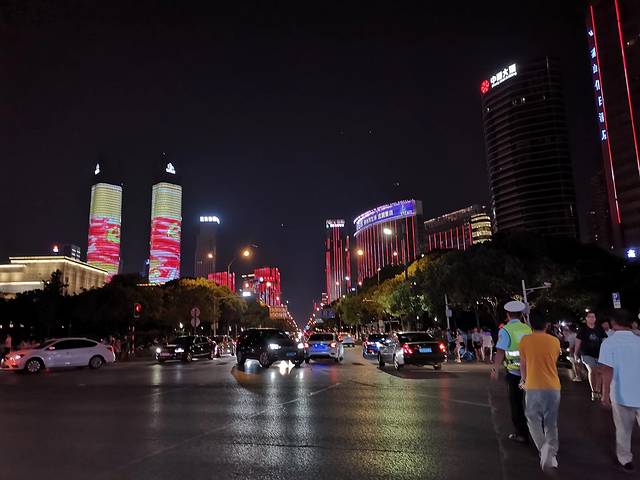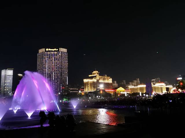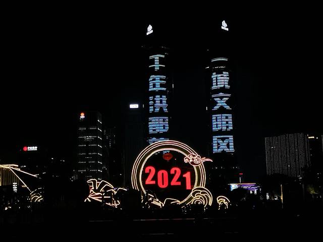 一路灯火璀璨,赣江两岸熠熠生辉。秋水广场每个方向都很灿烂。红色的灯光洒在八一大桥,串起一条红色蛟龙;滕王阁在对岸和建筑一起相依相融;双子塔与音乐喷泉完美的唱和出七彩的情怀;老老少少吹着江风唱着《我和我的祖国》……