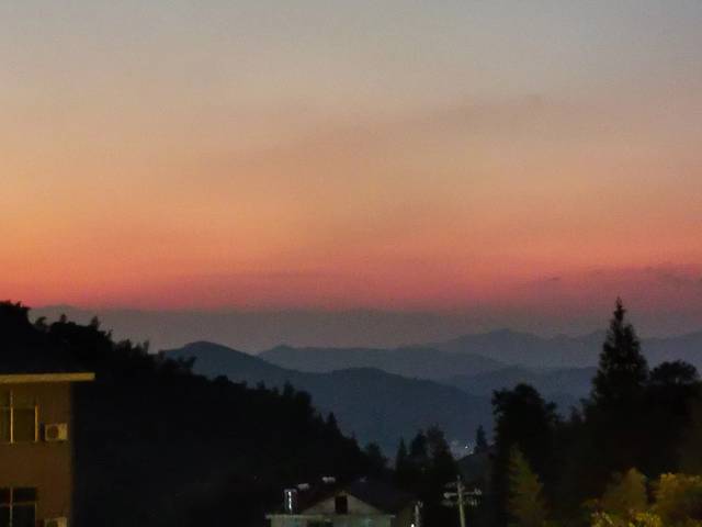 阳台上能看见山门的房子、茶园,除了饭菜贵,什么毛病都没有。