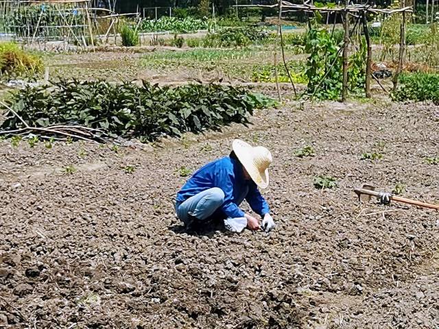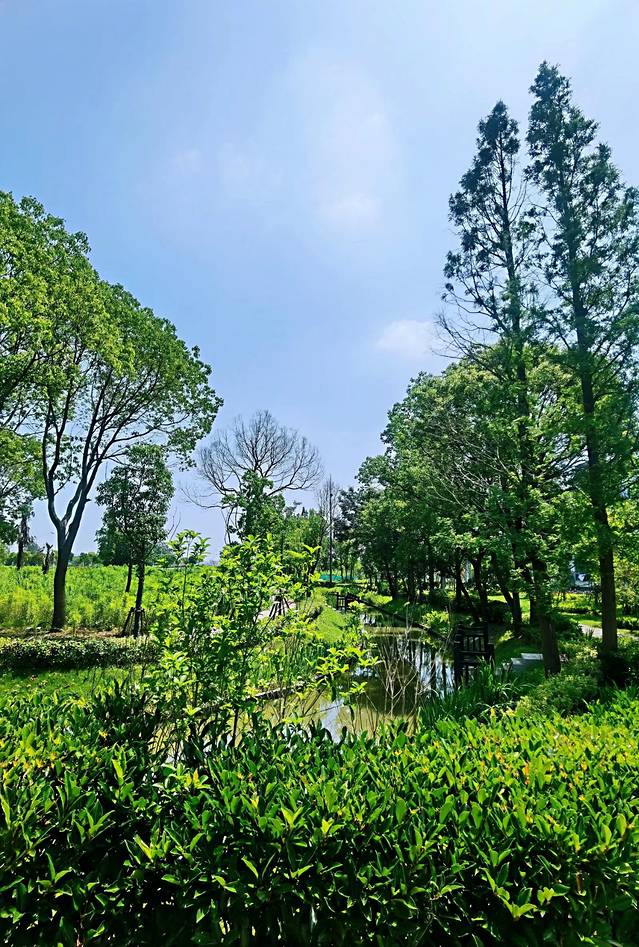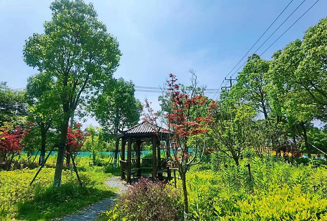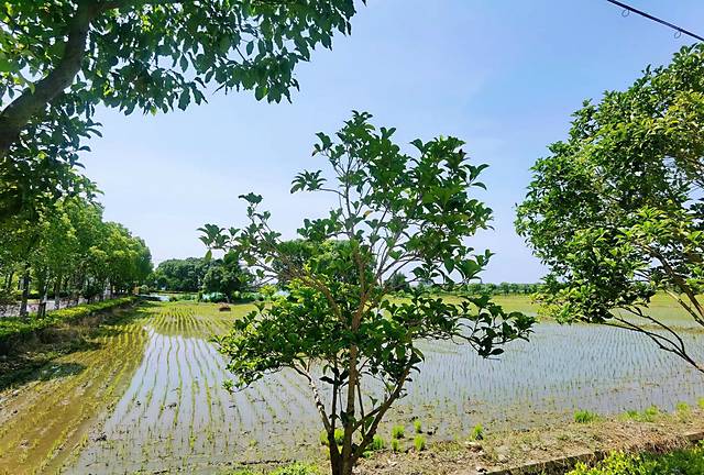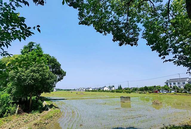 蓝天白云下,广阔的田野里,远处的民居,近处的稻田,呈现出了一幅“秧田百亩鹅黄大,横策溪村属老农”的画面,遗憾的是缺了一只大老鹅,有“鹅鹅鹅”……那就完美了。村外沿河边有一大片林地,可以去晃悠晃悠的,村旁还有一个“劳育基地”的菜园子,可以亲力亲为的。