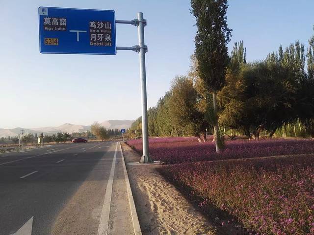 敦煌的路边有很多格桑花,到底是旅游城市,不过鸣山村和月牙泉村的家家户户都做起了客栈生意,路上都塞得密密麻麻。如果你不住他家,有点爱理不理,那眼神体态一点儿都不友好。