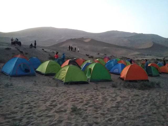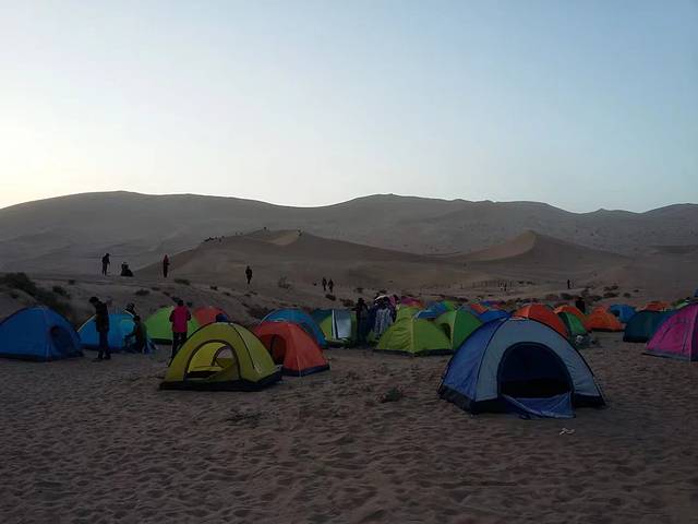来敦煌的人太多,沙子已经脏透,所以提前订的鸣沙山后山露营,包晚餐。到露营地,晚餐还没有开始。天正在黑下来,一群人在沙山排队玩摩托车冲沙,滑沙的板子已无人问津。艰难的爬上沙山,排队,玩的时候不想吃沙子,全程不敢大叫,玩了一把就去找人搭台等火锅了。