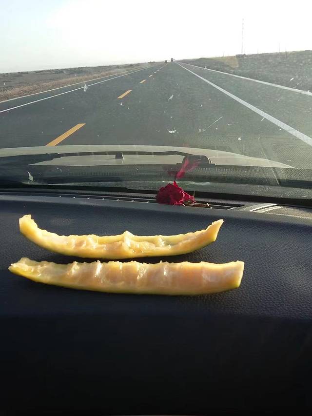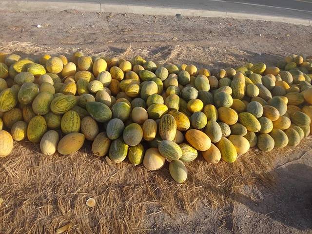 淖毛湖往敦煌,路边看到哈密瓜堆,10块钱3个,极甜。