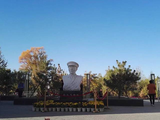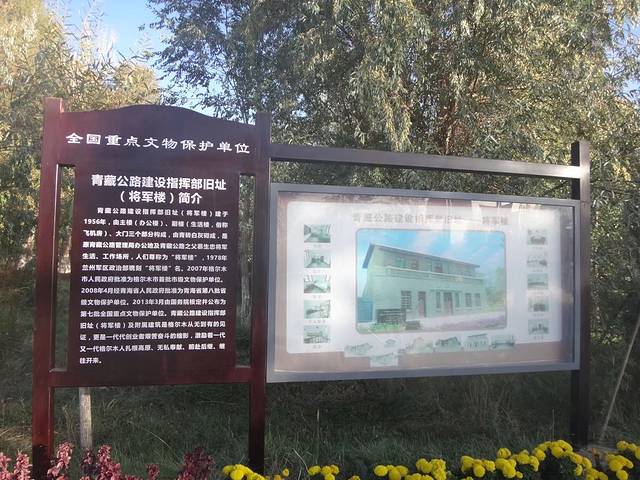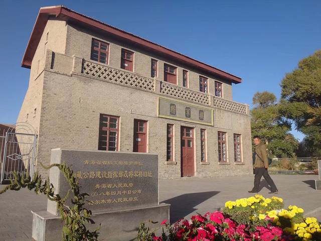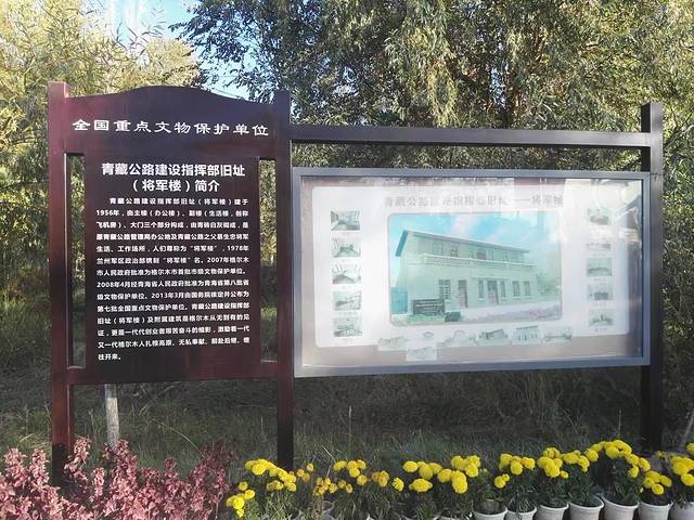 早早经过万丈盐桥,到了格尔木,去将军楼公园看青藏公路的指挥旧址。门口是一堆高高的挺拔的胡杨,闻着菊花香,四处打量。慕生忠将军的雕塑静静的一角,将军楼已经上锁,公园有青藏铁路的地图,默默踩上地图,心底涌现深深的敬意。他的骨灰撒在了沱沱河,那些去西藏的人,有人知道他吗?…….