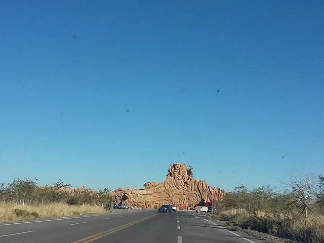 火洲名不虚传,漫天的灰,异常的热,经过吐峪沟、火焰山,不知道是不是因为国庆节,人流渐多,门口转一圈,里面光秃秃的,一堆人围着金箍棒、孙悟空那些雕像在拍,索然无趣的走了。如果有时间,吐峪沟和麻扎村我都是想看一看的,但是我更想去沙漠呀。