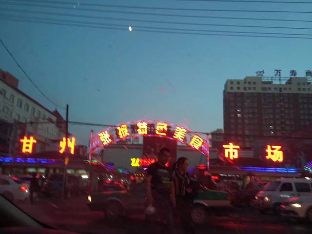 天已黑,嘉峪关的城墙隐没在夜里,什么也见不到,直奔玉门住宿。所幸住的酒店在公园对面,玉门的夜灯火潋滟,尽收眼底。玉门是铁人王进喜的故乡,小城人口不多,各怀心事又很安静的一个晚上。