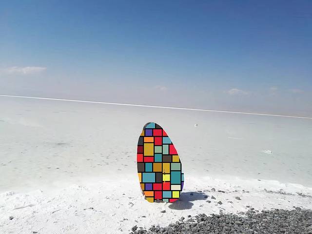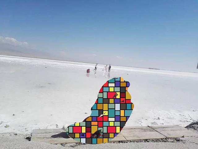 我欣赏不来盐雕,还是去看看倒影吧。结果在盐湖边走呀走,盐多水少,除了最里面,都不给下湖。钻个绳索拍照几秒,还被工作人员赶,真是体验感够够的了。找倒影也是个力气活,蓝天白云和人影和谐仿佛只是传说。看着一对拍婚纱的男女在小水坑边,盐湖边上还有很多人写的字,真是无心欣赏。转个圈圈出来环湖去吧。