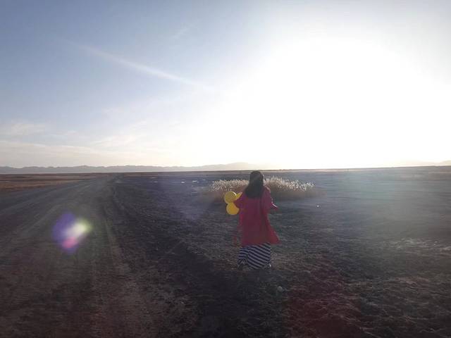 大柴旦湖,又叫翡翠湖,青海见的第一个盐湖,离镇上10来公里,有些泥泞的路,红的绿的盐田、芦苇荡阵阵的湿地、偶尔飞翔而过的野鸭、蓝天白云雪山的倒影,美炸天。白花花的盐,捧一把,硬的扎手,湖里捞的盐,柔软一些,来来回回,踩得裙子鞋子一溜黑。玩够了才回酒店下面修车。遗憾的是这个季节有一边湖水已经近干涸状态,而且下午的光照问题,还不算最魅惑的时候。