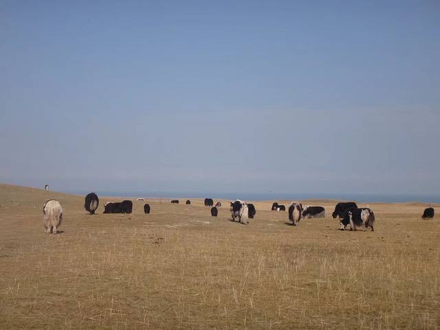 青海湖蓝的如钻石般耀眼,湖边的草原不时有羊群、牦牛群过马路,吃草,衬得蓝天白云下的湖水更清透。鸟岛也在改造,不开放,沙岛也关着。
