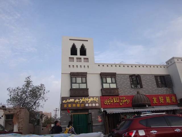 回程路过木卡姆传承中心、博物馆、回王府,我无意看历史的痕迹,但这三处相邻的建筑实在很特别,还是忍不住要去转一转。参观完博物馆的石头宴,7点半,工作人员下班,不够时间欣赏一场木卡姆表演。出来拍了几张照,意外发现阿勒屯古街,满心的欢喜。