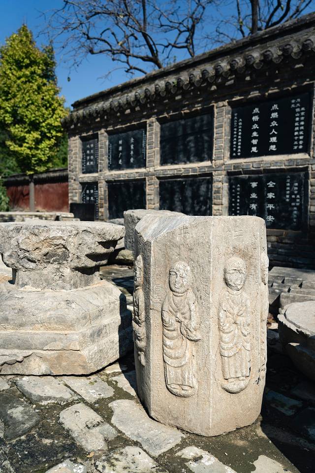 沿盘山路继续攀登,迎面屹立着一座石坊,名恩荣坊。这块牌坊原在卫贤镇南大街,建于明万历四十五年(1617年),因孟楠家一门三进士而立,由皇帝亲赐修建,后搬迁至此。枋下的龙凤板单额枋等构件上雕竹林七贤、狮子滚绣球、八仙、一门三进土等图案,据说为河南省重点保护文物。